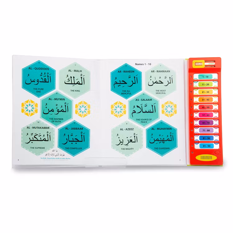 Denna vackert illustrerade ljudbok är speciellt utformad för att hjälpa barn och vuxna, memorera, förstå, agera och göra dua med Allahs vackra namn.