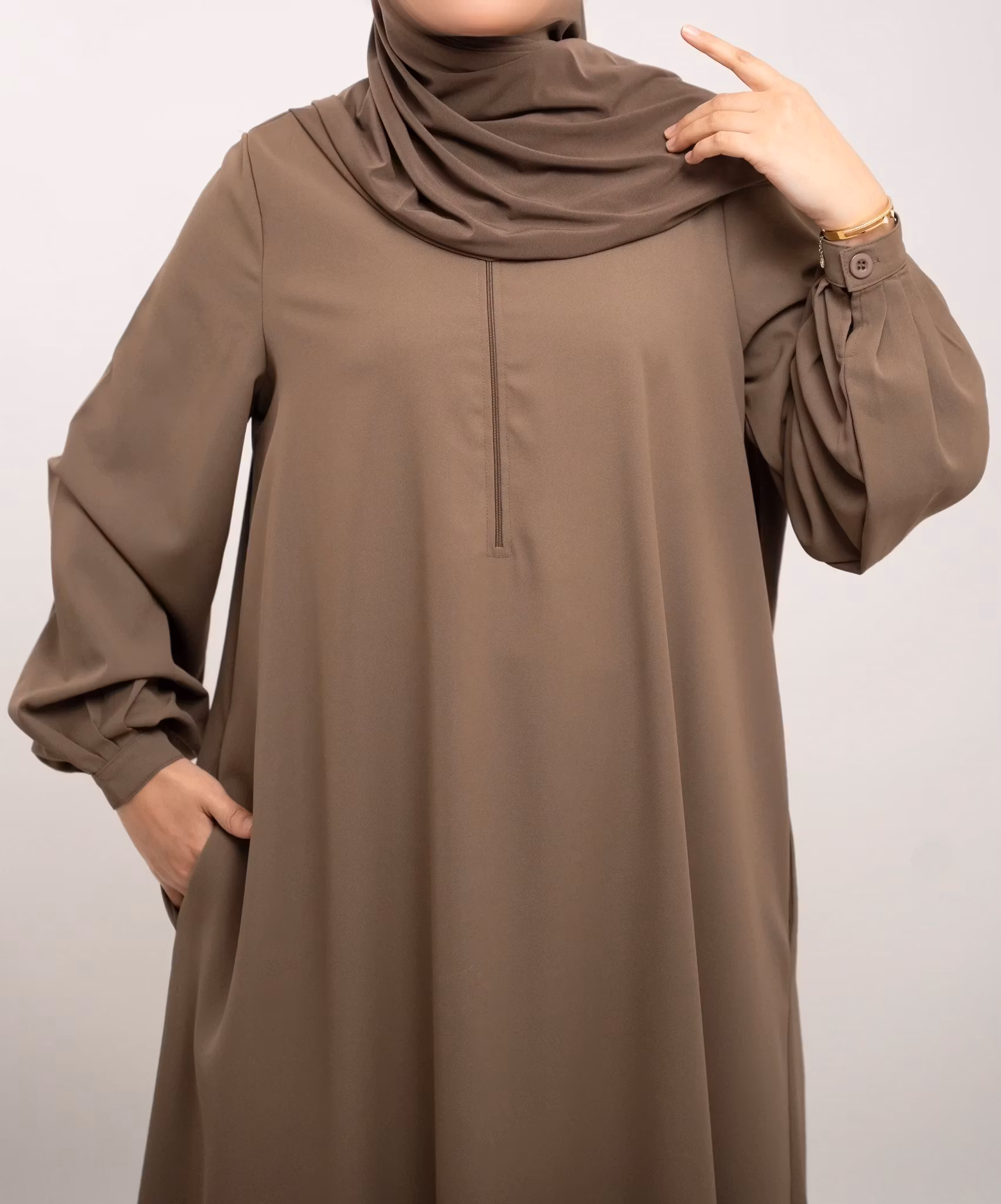 A-Line Abaya med dragkedja - perfekt till amning!En stilren abaya i populärt Jazz-tyg, känt för sin mjuka känsla, sitt vackra fall och sin naturligt lätt skrynk
