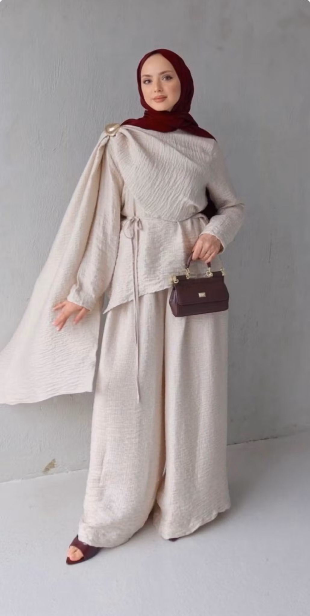 Elegant 2-delat Set – Tunika & ByxorEtt stilrent och modernt 2-delat set bestående av en tunika och vida byxor, designat för en elegant och modest look.Tuni