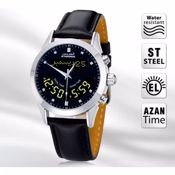 Hijri och gregoriansk kalender med veckodagar.Två språk (engelska och arabiska). Koran bokmärke.Azan tider för de flesta städer runt om i världen med Qibla