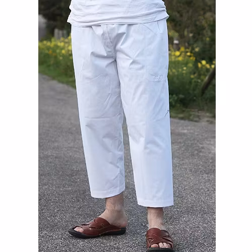 Klassiska arabiska byxor. Tillverkad av robust bomullstyg. Byxorna har gummiband runt midjan med ett rep som man kan dra till. Byxorna har två fickor med varsin dragkedja.